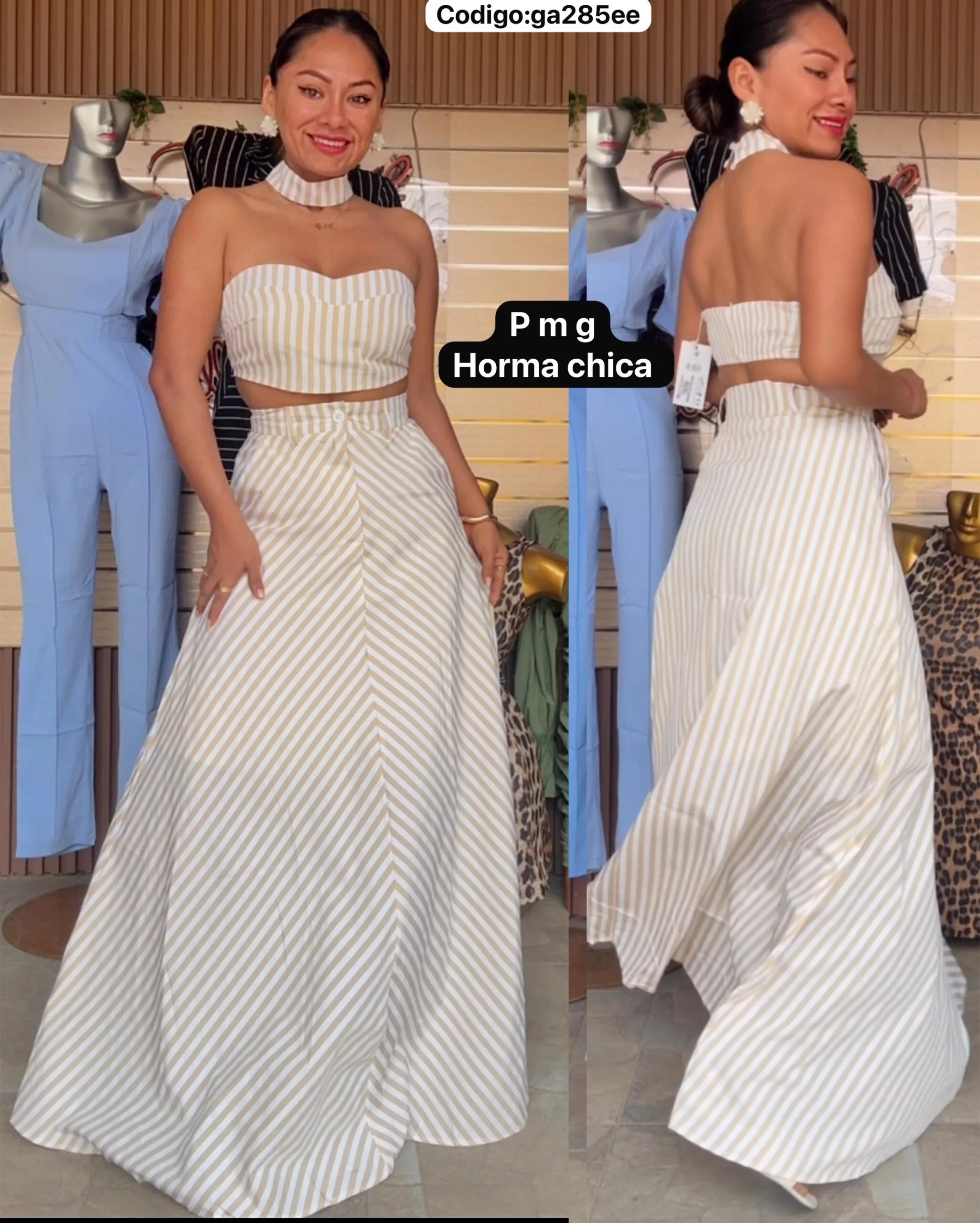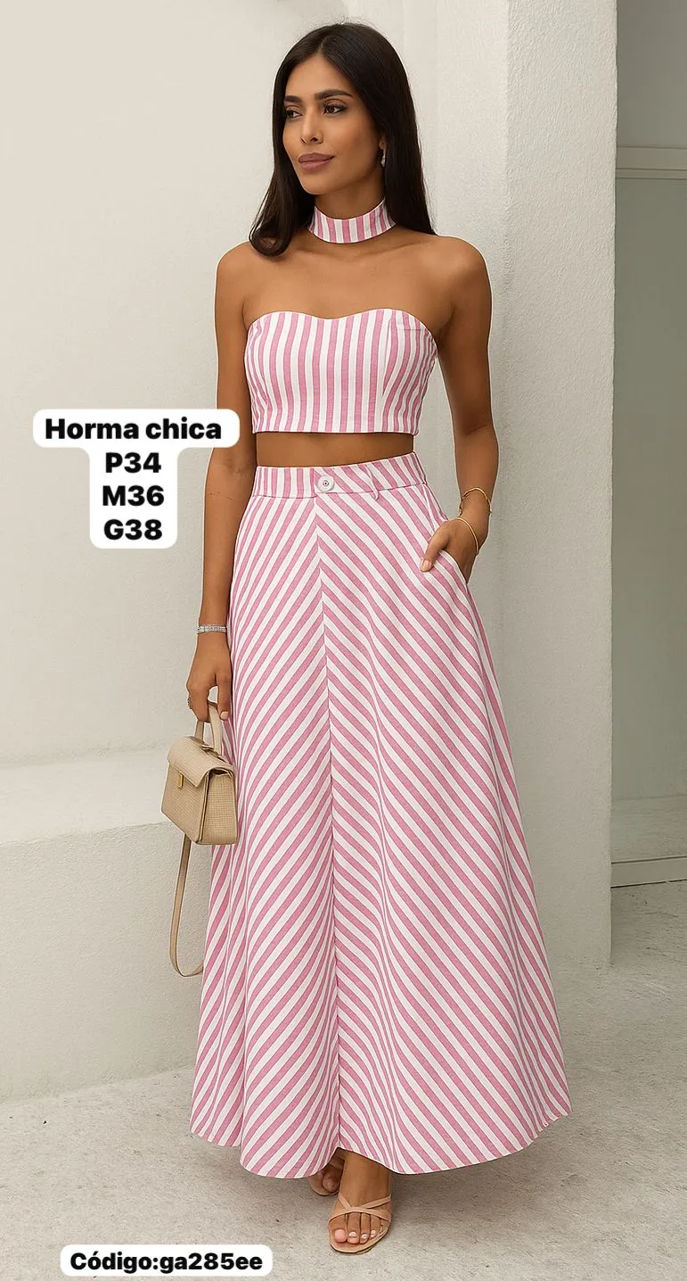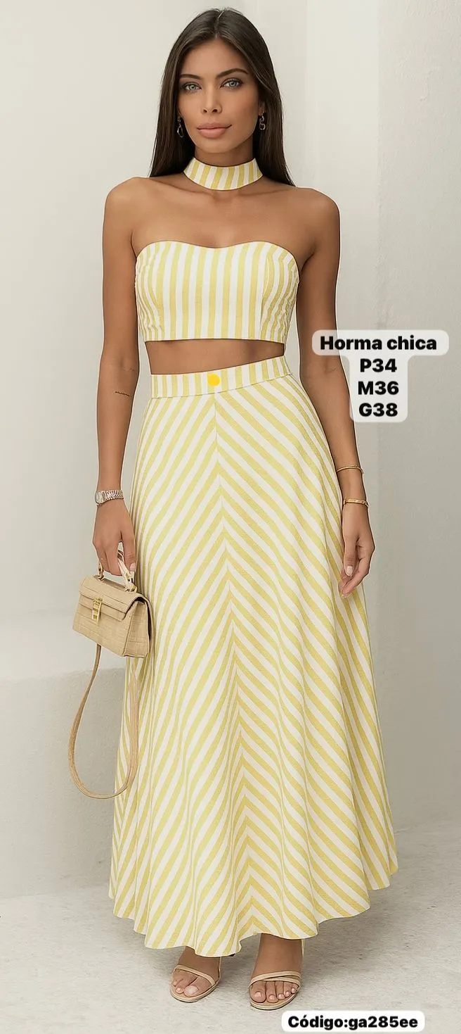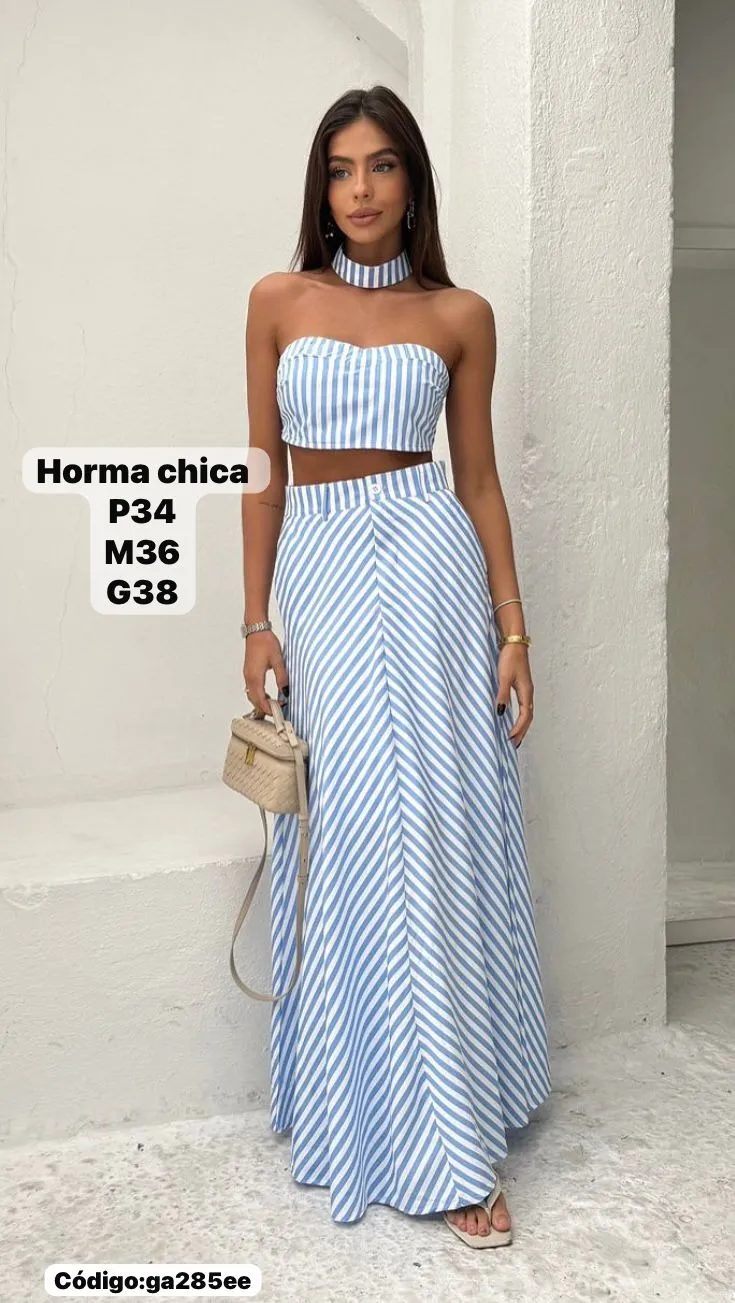 Bello Conjunto a Rayas Falda Larga con Top con Gargantilla🤩.👍