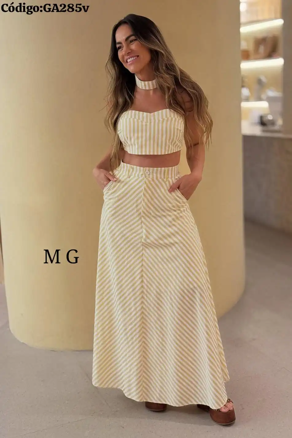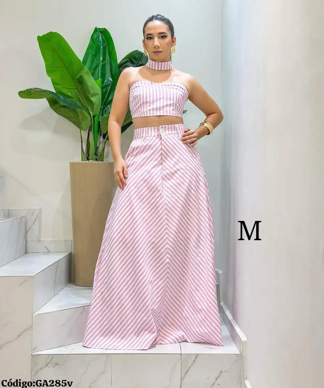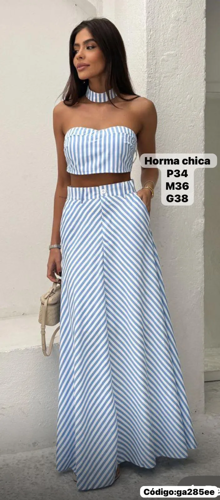Bello Conjunto a Rayas Falda Larga con Top con Gargantilla🤩.👍