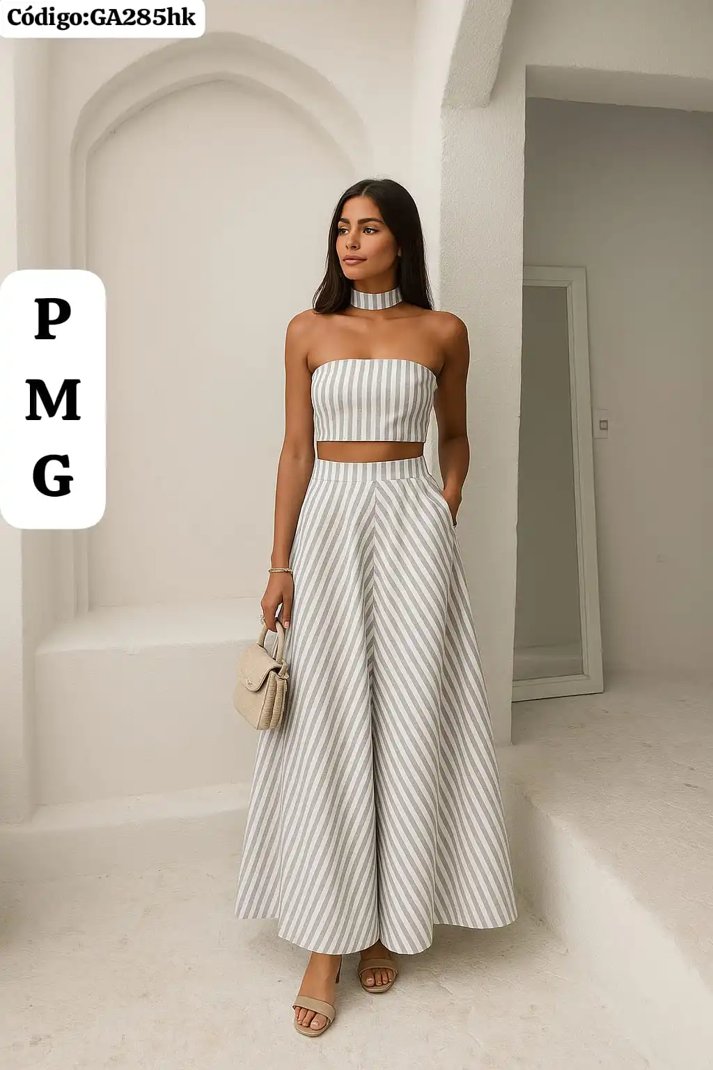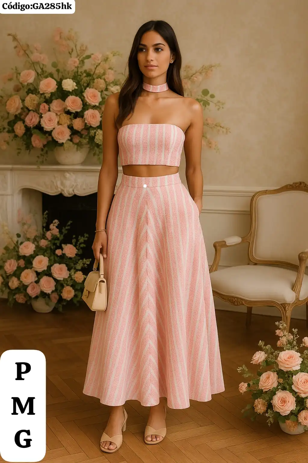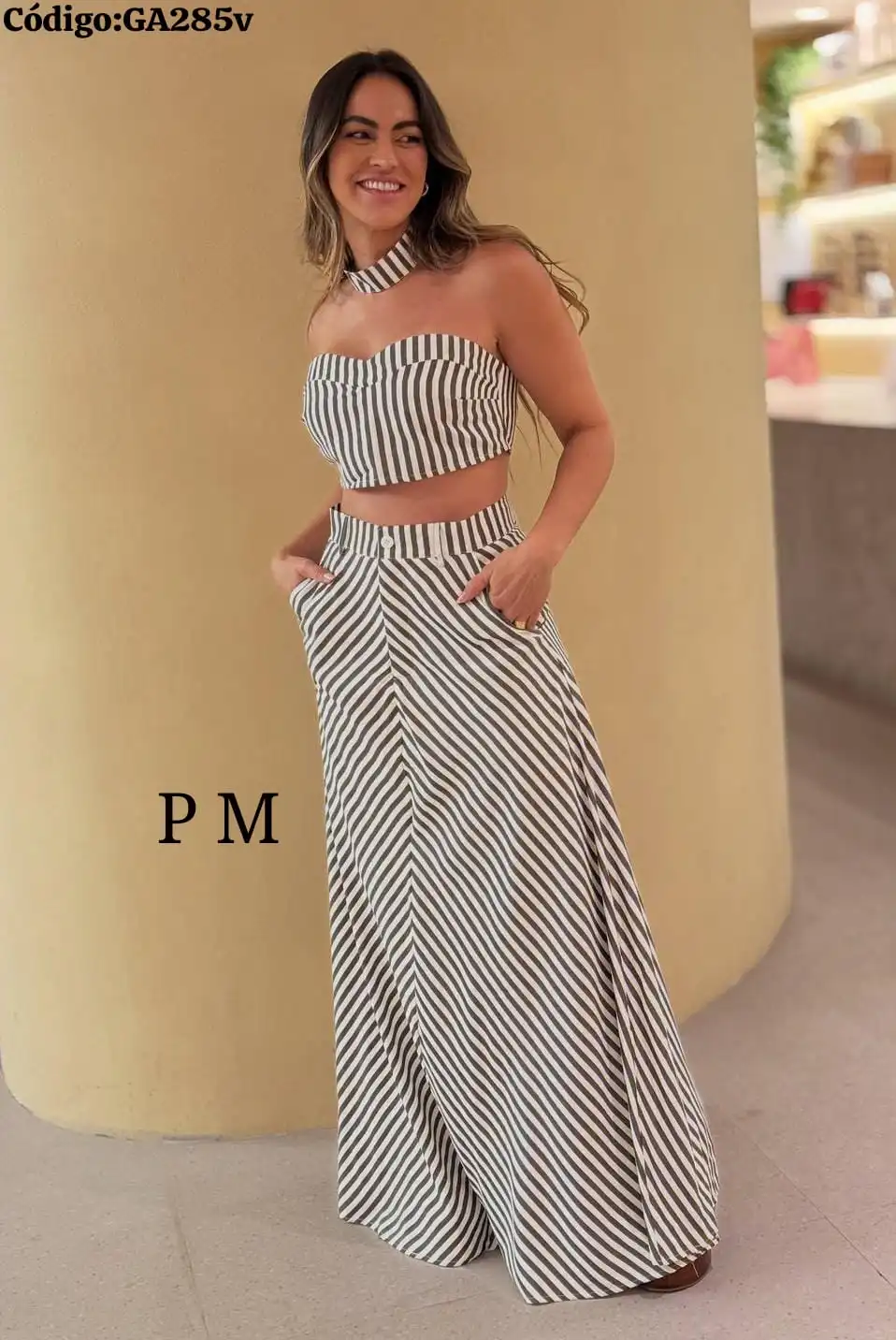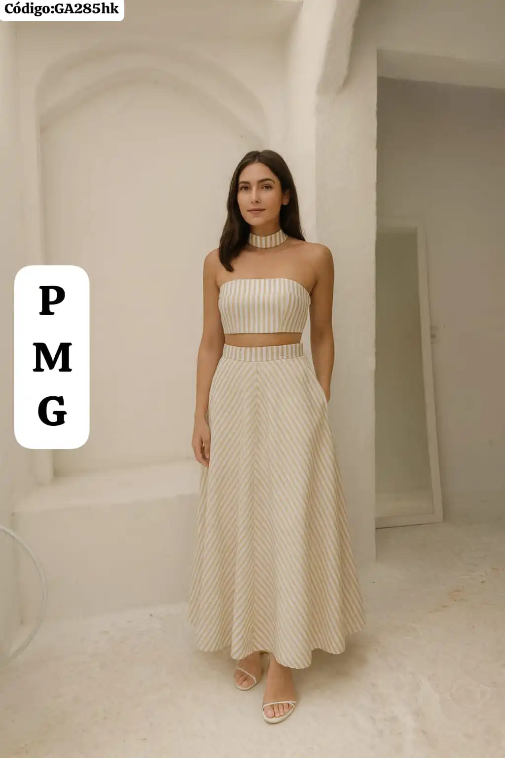 Bello Conjunto a Rayas Falda Larga con Top con Gargantilla🤩.👍