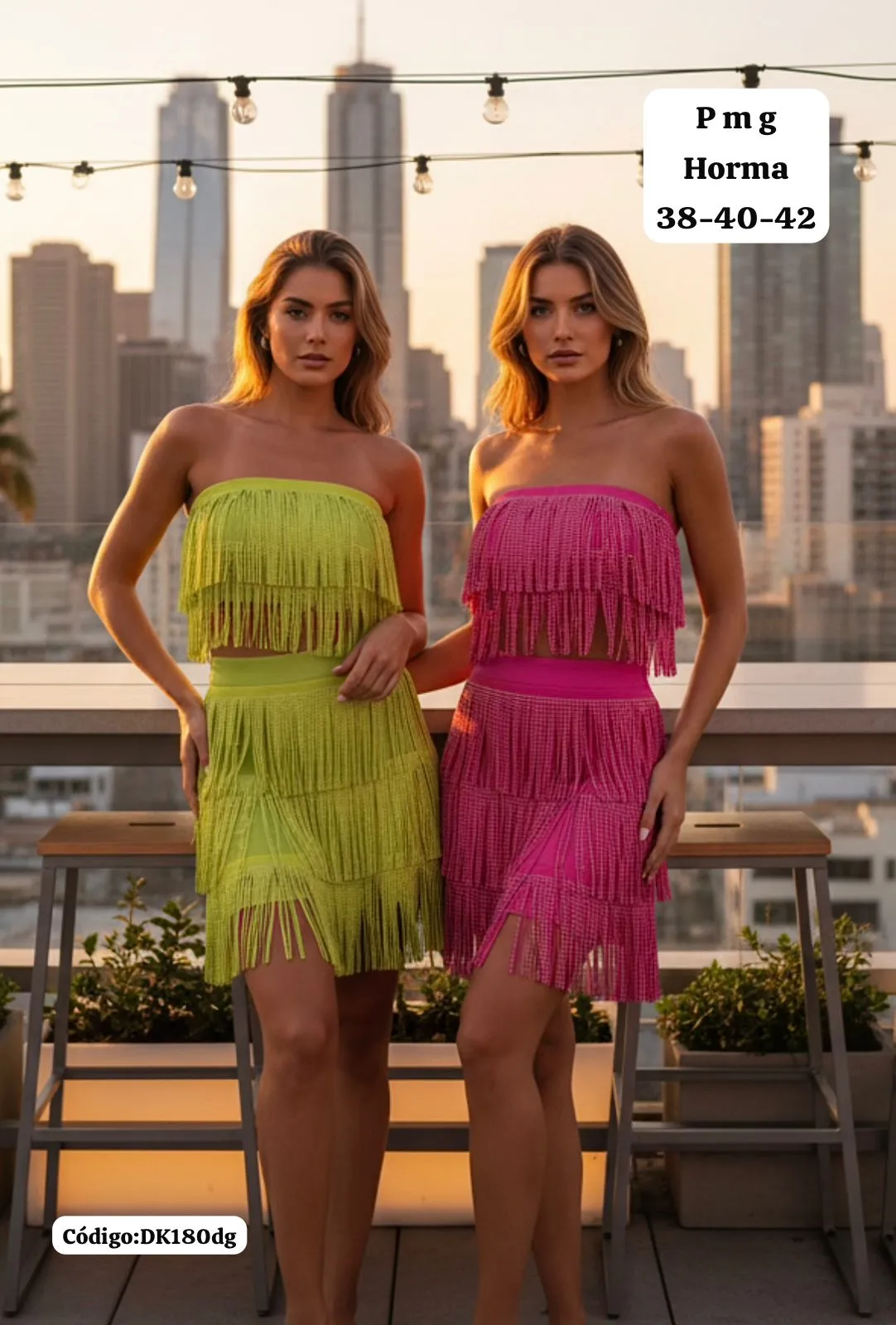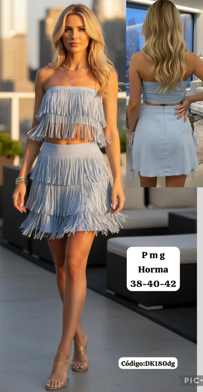 Hermoso Conjunto Top y Falda corta con Flecos🤩👍 cantidad
