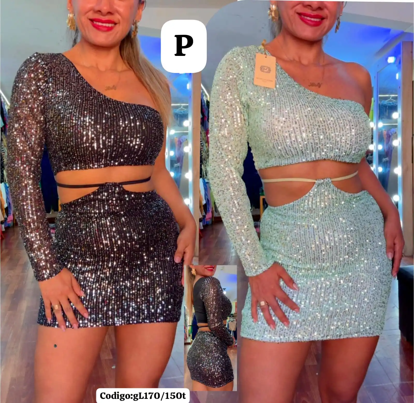 Bello Conjunto con Falda de lentejuela💖.👍 cantidad