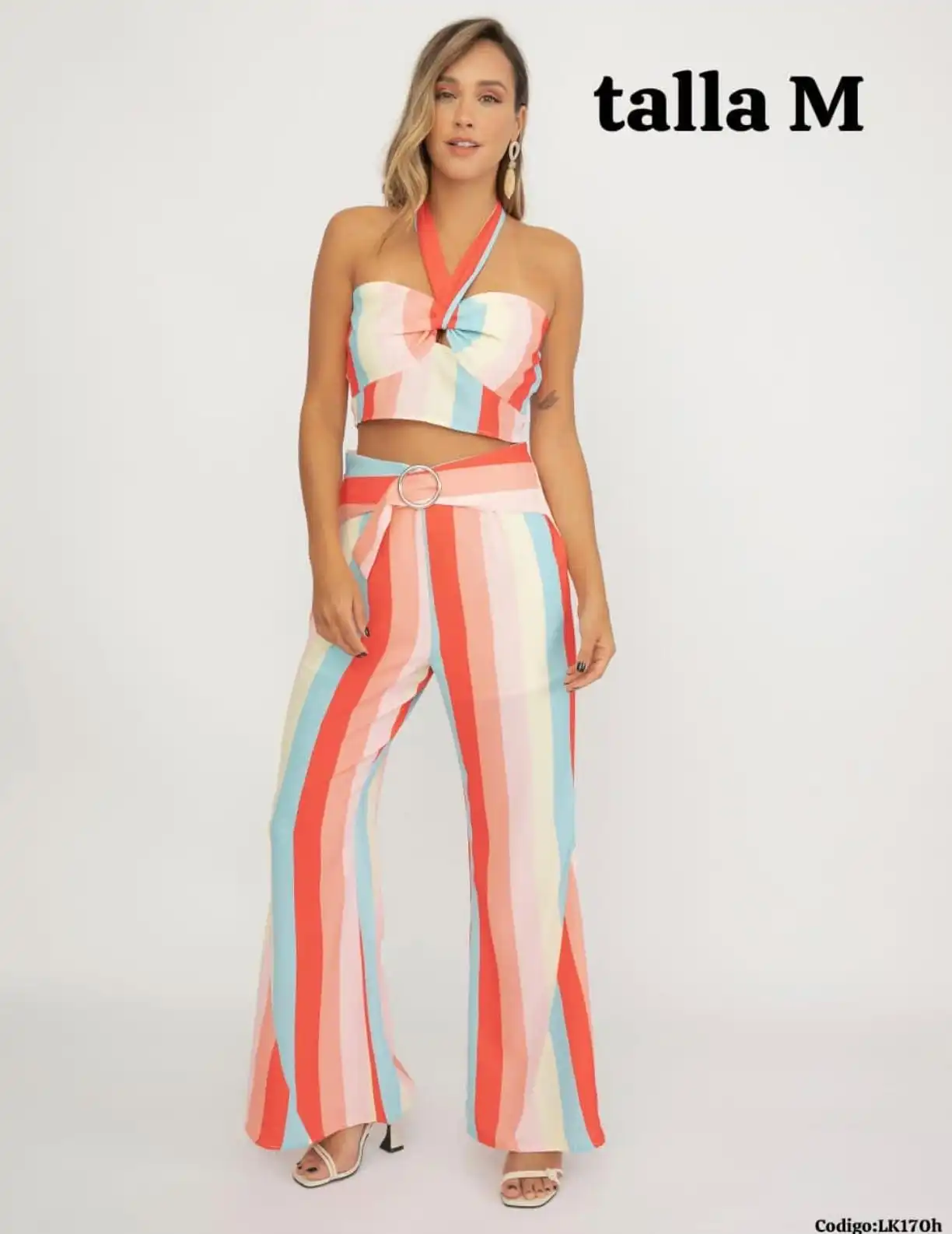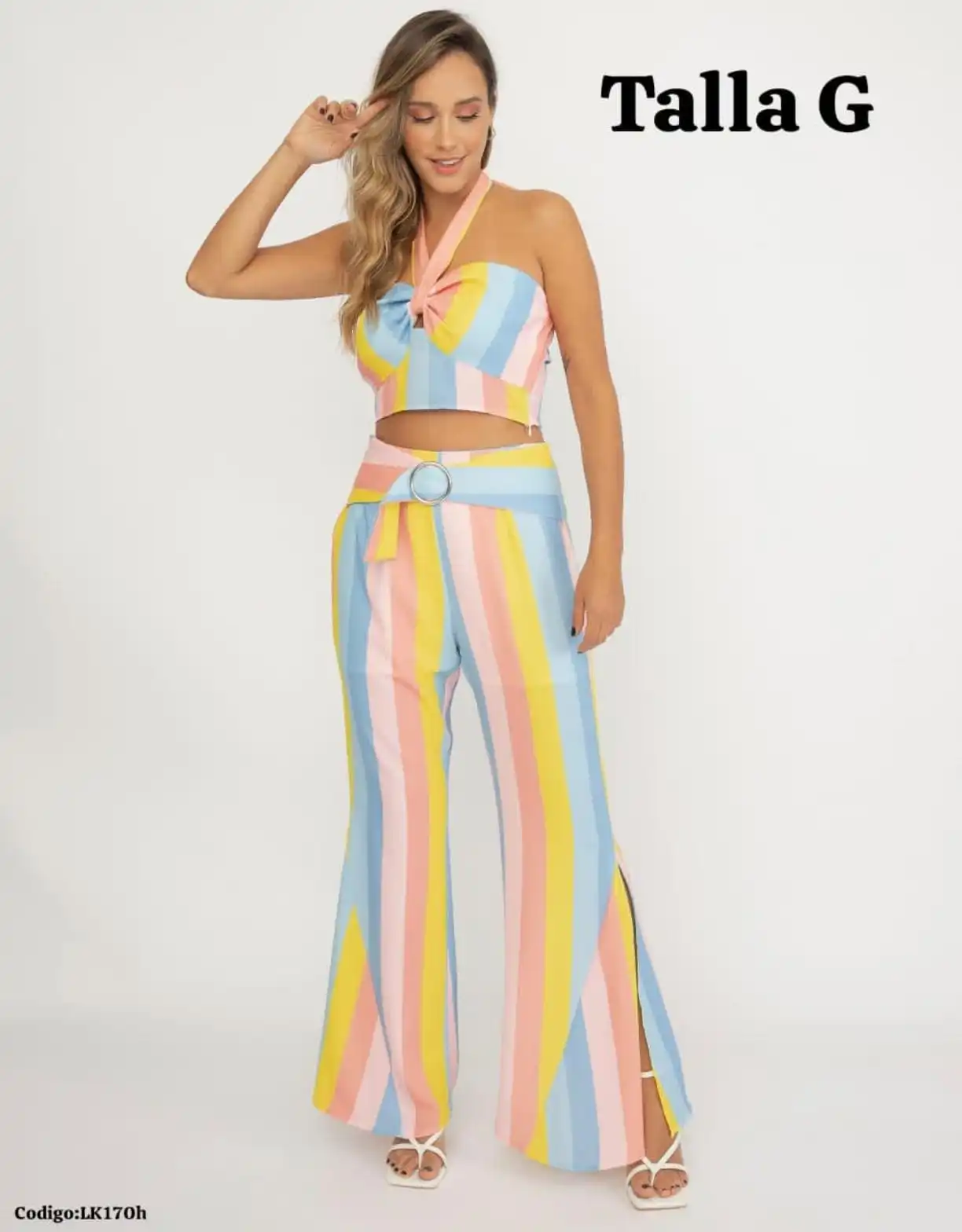 Bello conjunto con Pantalona a rayas🥰.👍