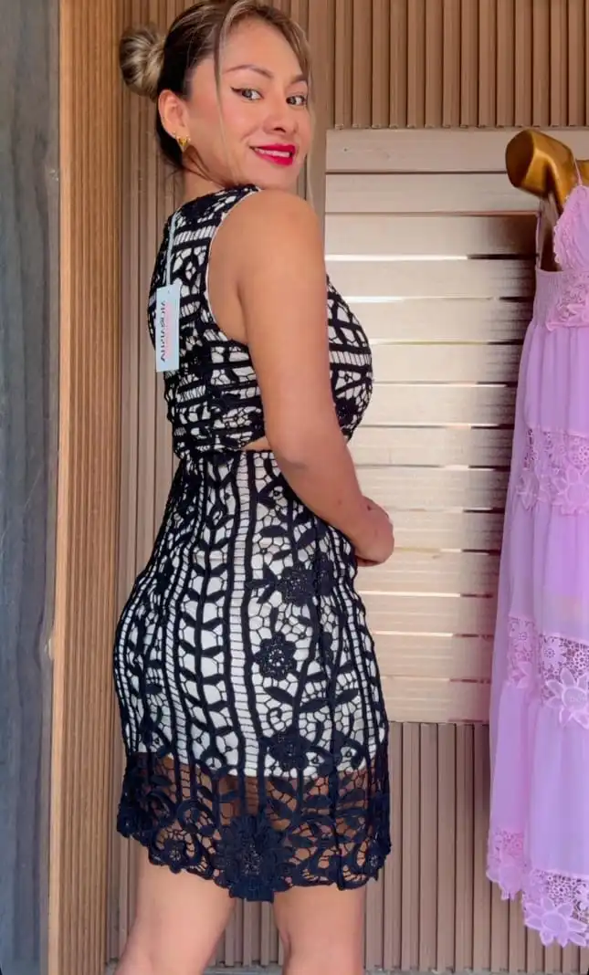 Bello Vestido corto de encaje😍. cantidad