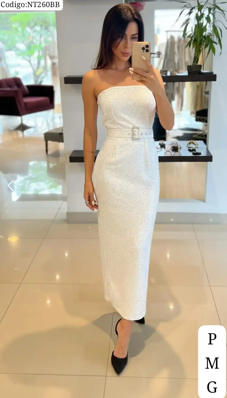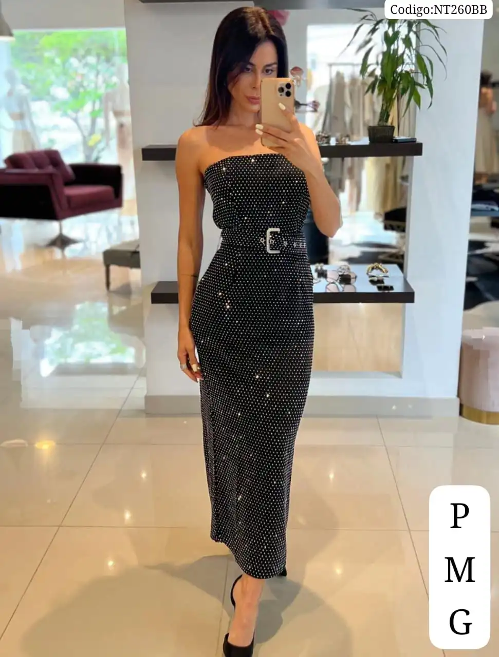 Bello Vestido Largo con Brillo y Cinturon❤️👍 cantidad