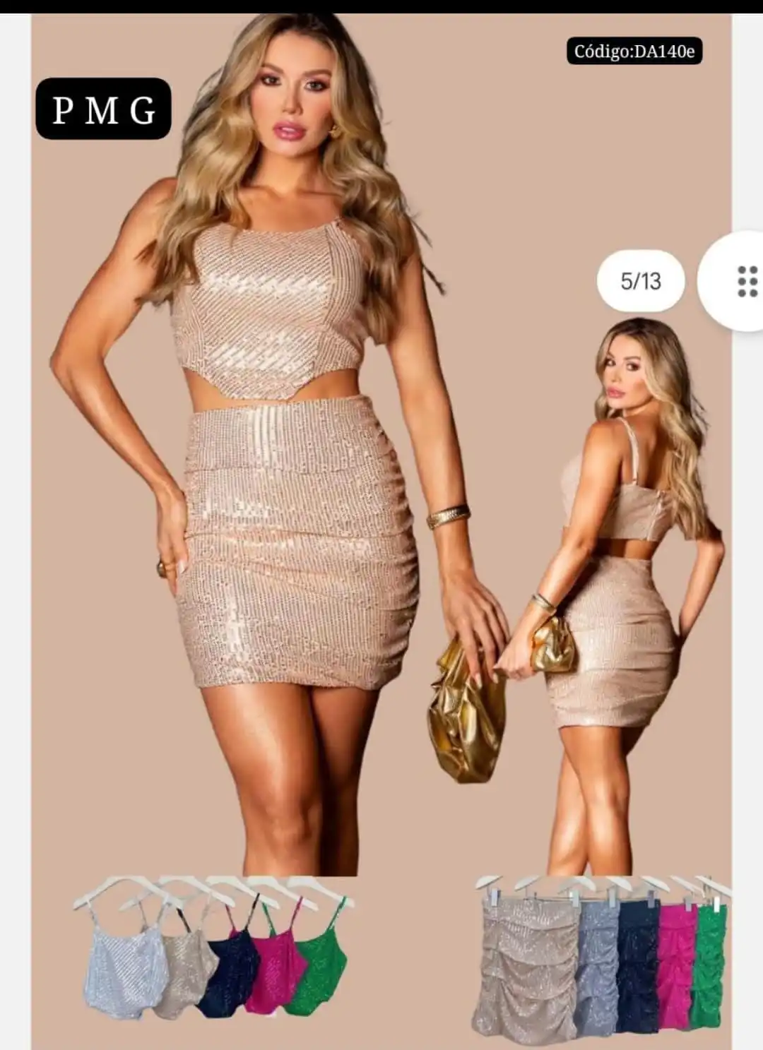 Hermoso Conjunto con falda corta de lentejuelas🤩.👍