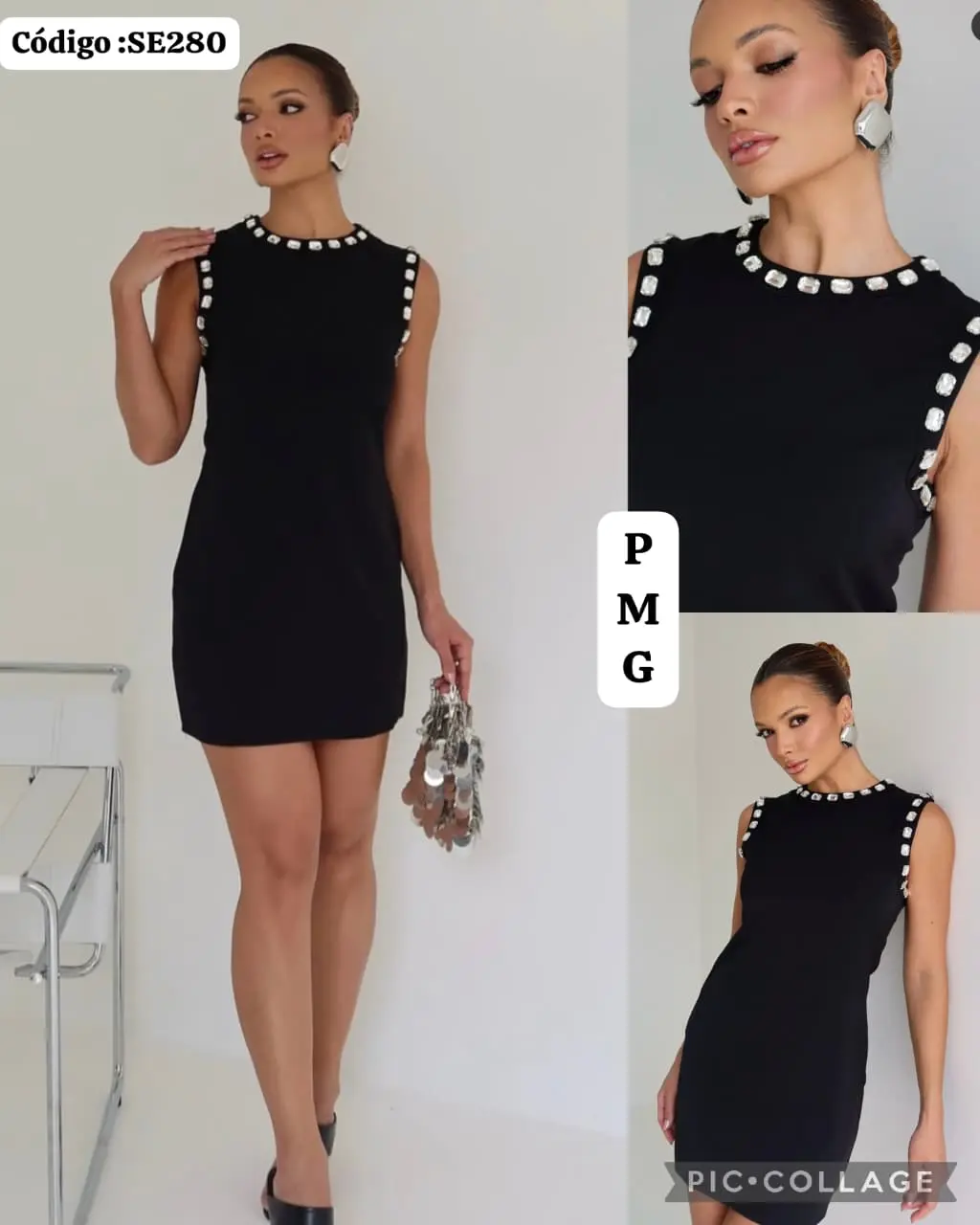 Bello Vestido Corto con Piedras en el Cuello🥰.👍
