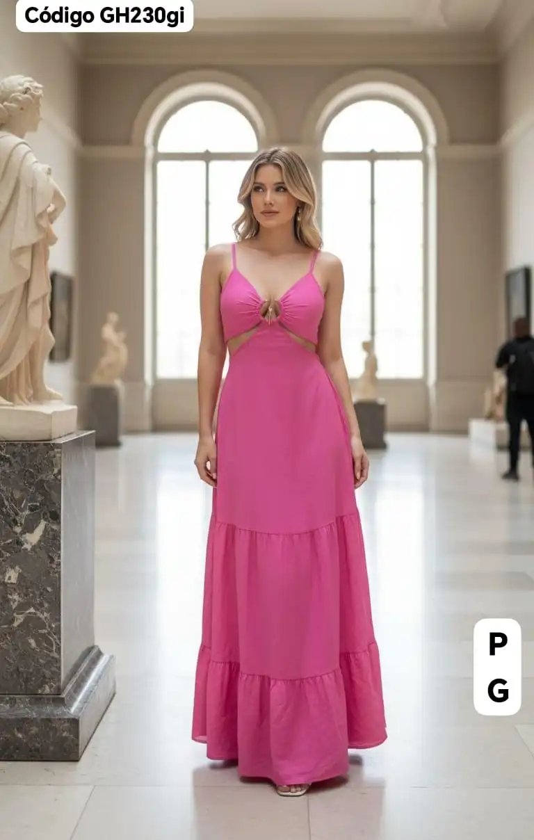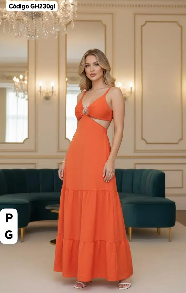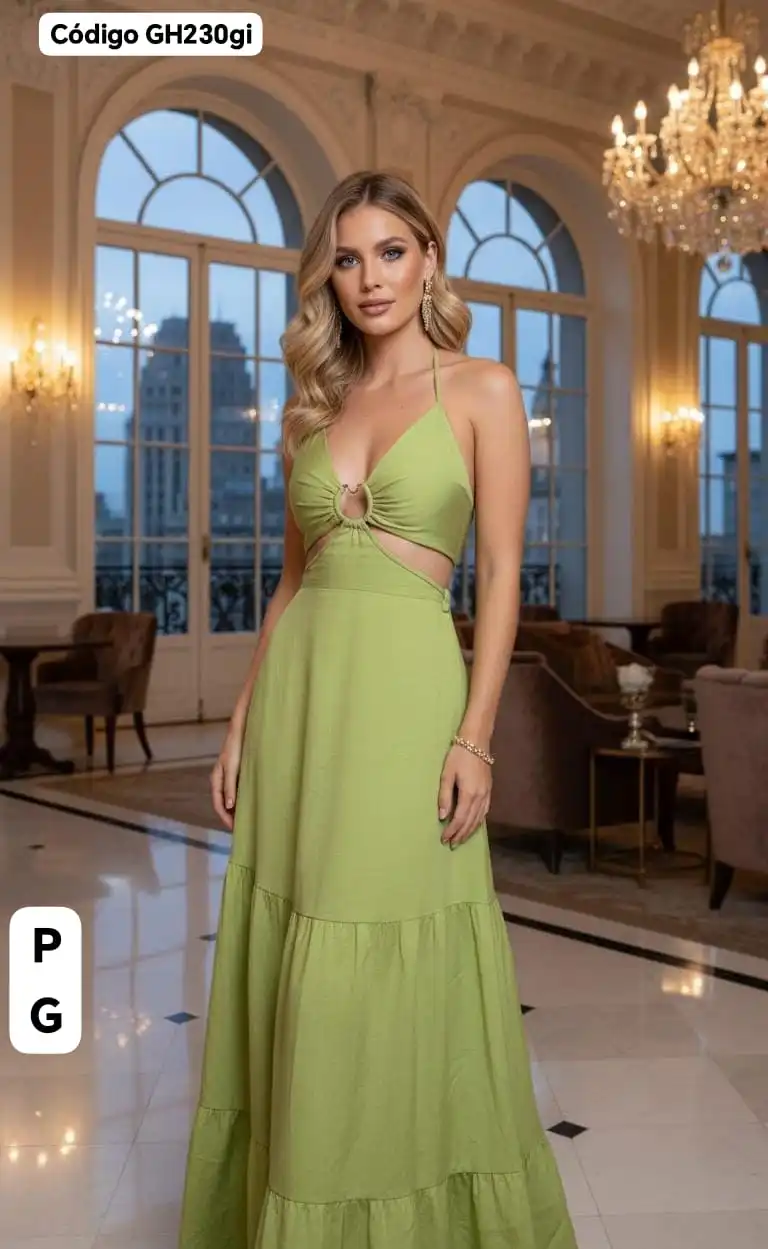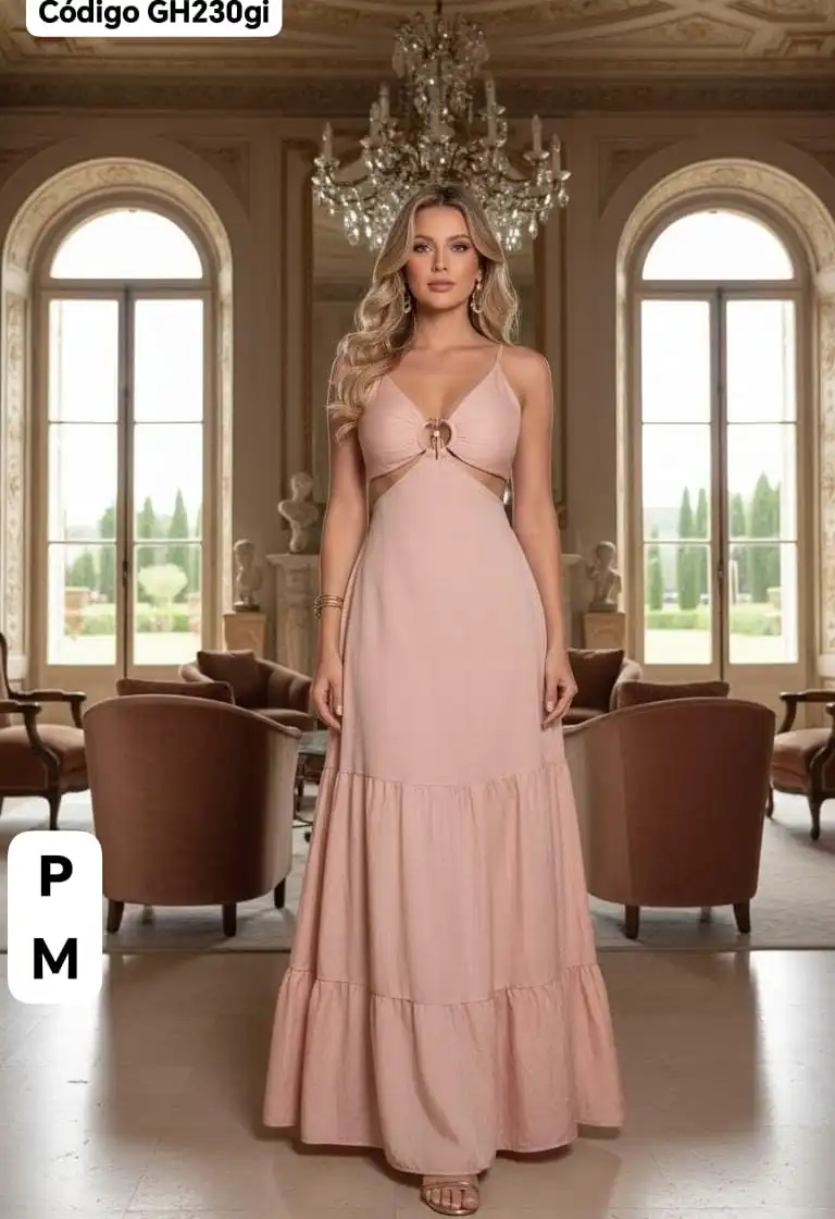 Hermoso Vestido Largo con Broche Dorado😚.👍